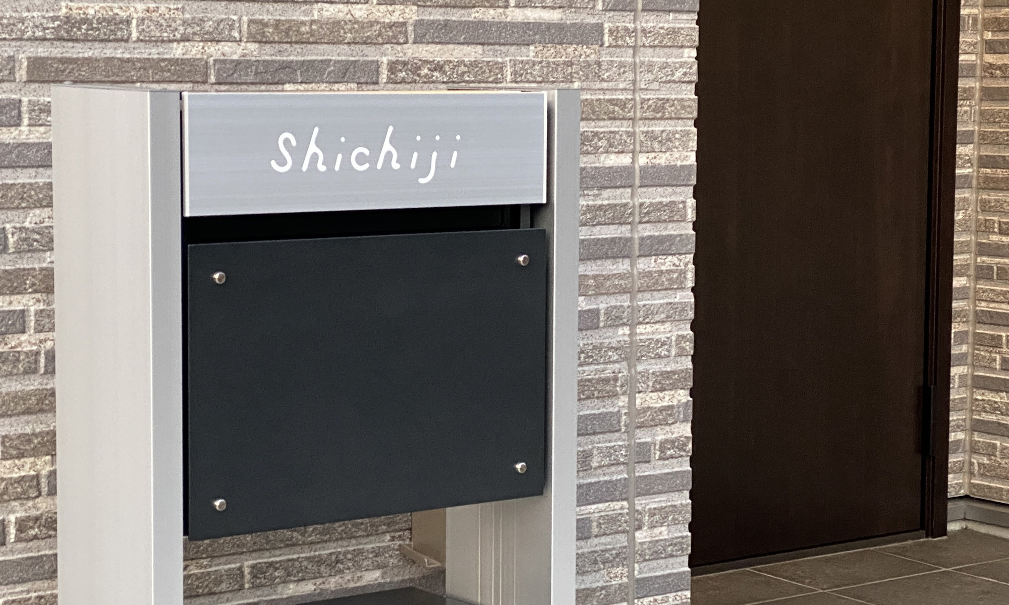 ご依頼をいただき作成したオリジナルフォントによる表札です。ヘアラインステンレス板、エッチング加工。