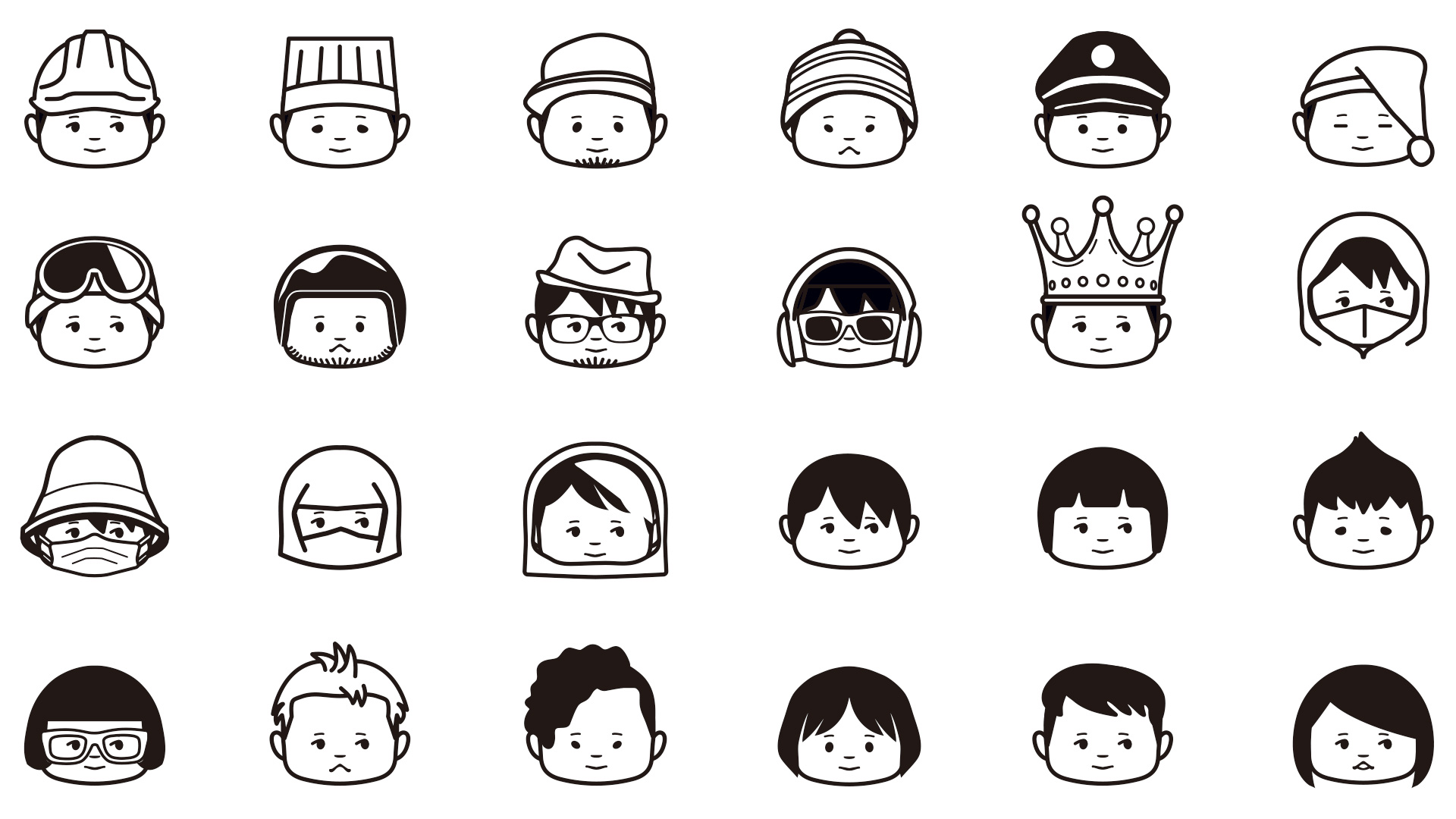 顔パーツの組み替えで似顔絵的表現にするアイコンイラストです。